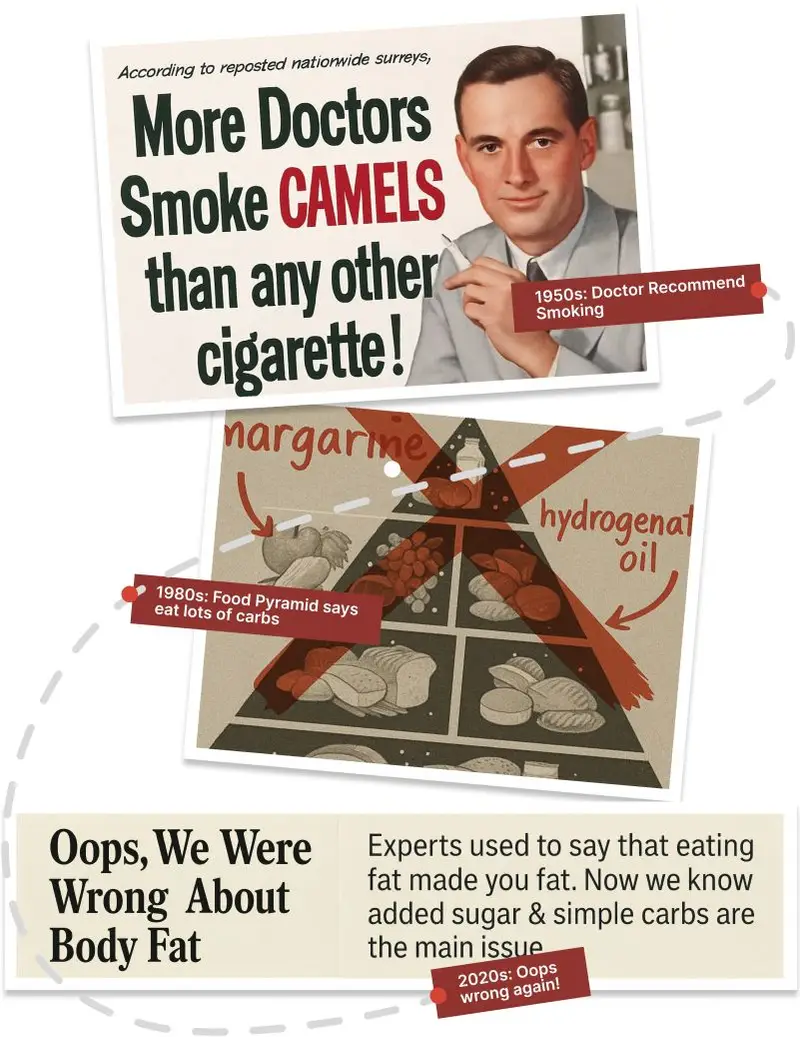 Or when they said your daily “food pyramid” should be a high-carb, low-fat diet packed with ultra-processed foods like margarine and hydrogenated oils.