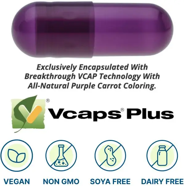 Vcaps® Plus is made from nothing but plant cellulose and water. That means Zinc7 is non-GMO, vegan, and free of both soy and dairy. And it allows your digestive system to absorb as much zinc as possible.